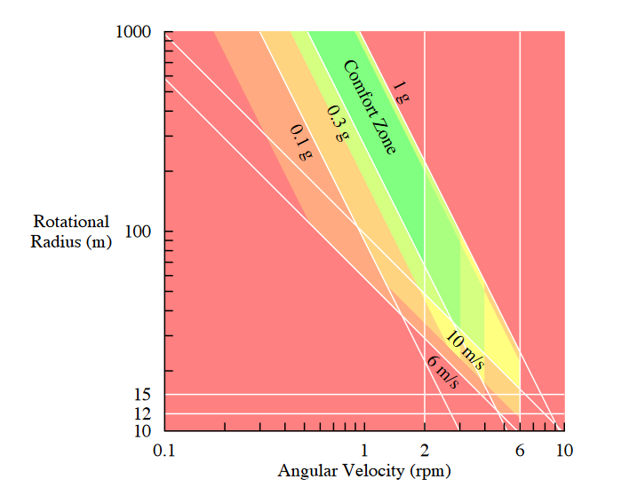 Figure in Hall, Theodore W. “Artificial Gravity in Theory and Practice.” International Conference on Environmental Systems, 2016, www.artificial-gravity.com/ICES-2016-194.pdf.